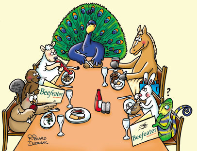 Cartoon to illustrate "What Kind Of Diner Are You?" for Beefeater.