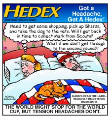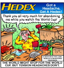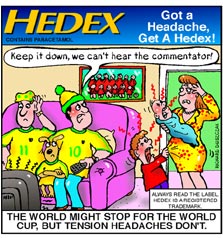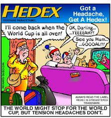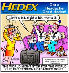| A further set of advertising cartoons commissioned by Hedex with a World Cup theme, that appeared in Women's sections of national newspapers and selected womens magazine. Approximately twelve ideas/rough sketches were supplied for them to choose from. | ||||||
