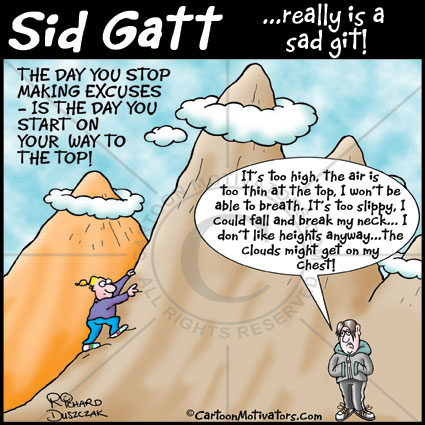 This week we look as 'making excuses' - I know I make excuses, even as I write I'm thinking of one to get me out of going down to the gym! (I'll probably go - it's just that I feel a bit tired so early in the morning.) Here's a few quotes I found while out looking for inspiration for this cartoon...