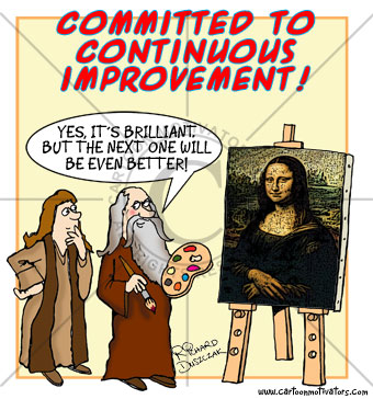 This week we have a look at the subject of 'Continuous Improvement'. I personally liked this quote from Kim Collins....Strive for continuous improvement, instead of perfection.