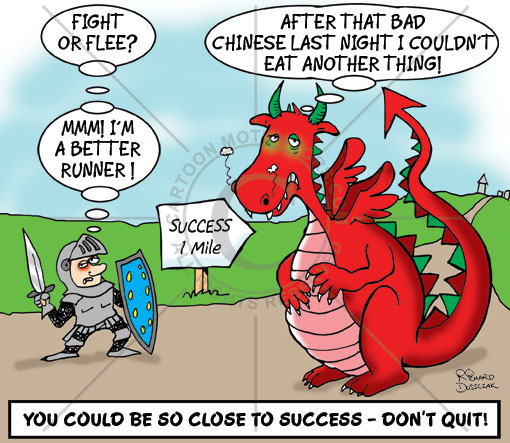 In my thirty years as a freelance cartoonist I've had my fair share of overcoming obstacles, setbacks and disappointments and I'm sure there will be lots more before I hang up my pencils. The trick is to take it in your stride and bounce back when you've been knocked for six - for when you say you've had enough and you quit you're finished. Leaving the way open for someone else to take your place and maybe the prize!