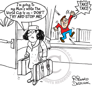 With the World Cup about to start I thought I'd better jump on the bang wagon and do a topical cartoon. I know there's more people who want nothing to do with it especially my wife and probably most other guy's wife's - so it inspired this...